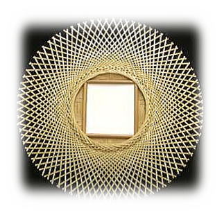 幅2.7o、厚さ0.6oの細ヒゴ84本を使って二つの輪弧編みを作り、これを重ね合わせて編むことで、繊細な美しさを表現しています。竹工芸の装飾性を少し強めに表現した作品ですので、個性が強めの書や絵などの作品の演出に最適です。中心部には