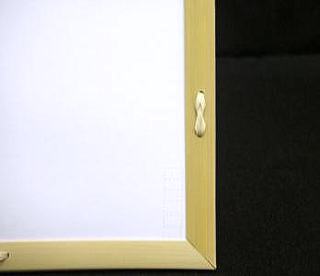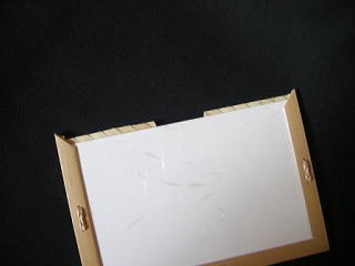 和額の上縁を取り外し、はがき作品をあじろ生地と縁との間に差し込みます。
