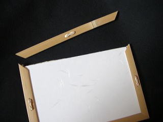 宅配便でお送りするはがき和額は、裏側の支え竹を抜いた状態で梱包しています。以下の手順で組み立ててください。